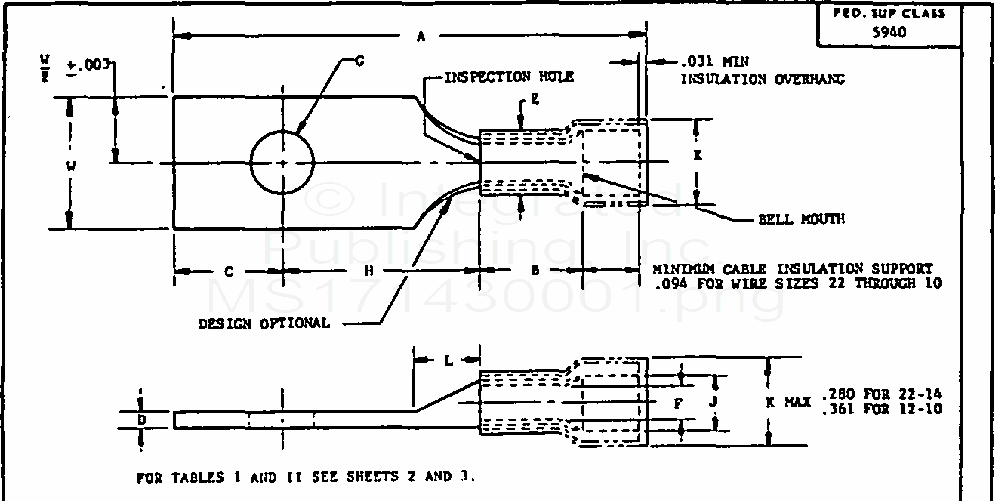 MS17143 Terminal, Lug, Crimp Style, Copper, Insulated, Rectangular Tongue, Type Ii, Class 1 For 105 Deg. C. Total Conductor Temperature (S/S By Sae-As17143)