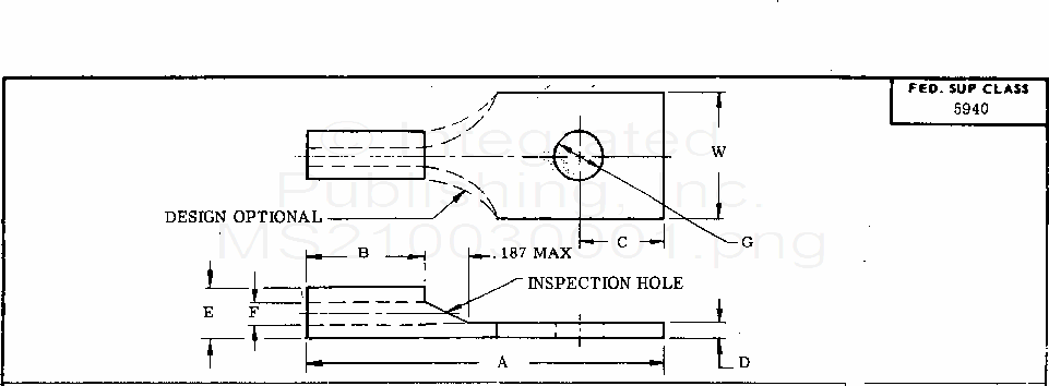 MS21003 Terminal, Lug, Uninsulated, Rectangular Tongue, Crimp Style, Copper, Type 1, Class 1 For 175 Deg. C Total Conductor Temperature