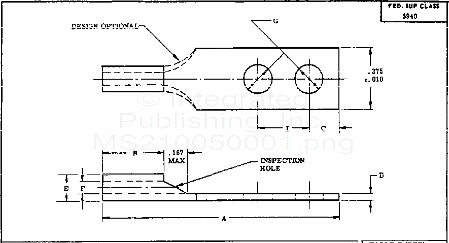 MS21005 Terminal, Lug, Uninsulated, Rectangular Tongue Two Stud, Crimp Style, Copper, Type I, Class 1