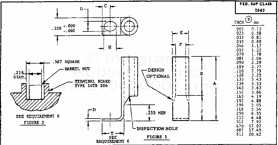 MS21007 Terminal, Lug, Uninsulated, Rectangular (Bent 90 Degree), Crimp Style, Copper, Type I, Class I (Special Applications) For 175 Degree C Total Conductor Temperature