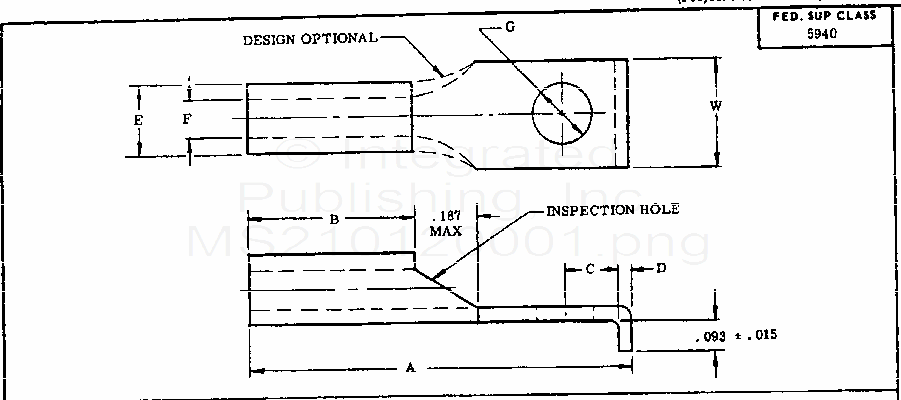 MS21012 Terminal, Lug, Uninsulated, Rectangular Tongue, Lipped End, Crimp Style, Copper, Type I, Class 1