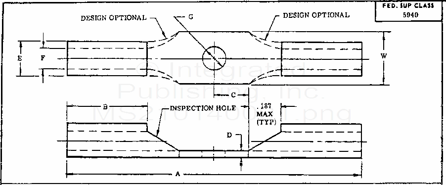 MS21014 Terminal, Lug, Uninsulated, Rectangular Tongue, Two-Barrel, Crimp Style, Copper, Type I, Class 1