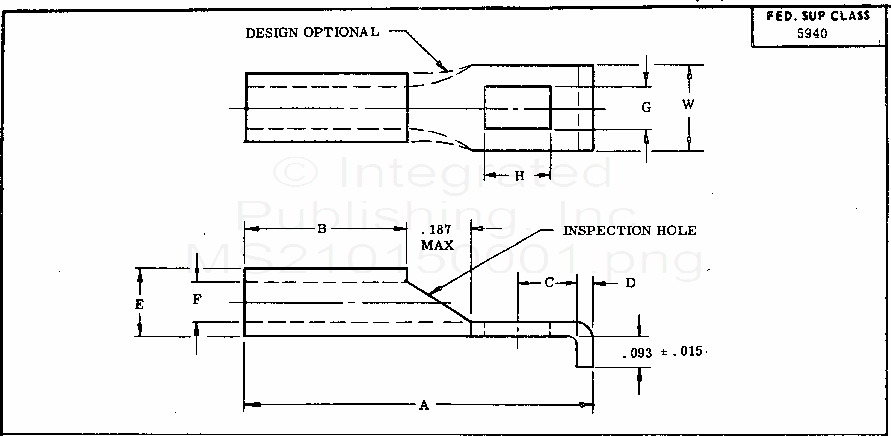 MS21015 Terminal, Lug, Uninsulated, Square Tongue, Lipped End, Rectangular Stud Hole, Crimp Style, Copper, Type I, Class 1