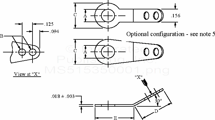 MS51535 Terminal, Lug, Solder Type, Copper Stamping, Two Hole, 30 Degrees